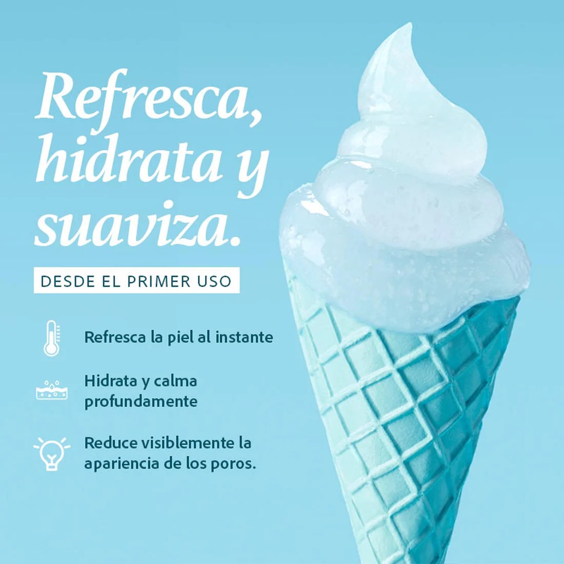 Ideal para usar en días calurosos, después del ejercicio o tras procedimientos dermatológicos, proporcionando un efecto calmante inmediato y una hidratación profunda.