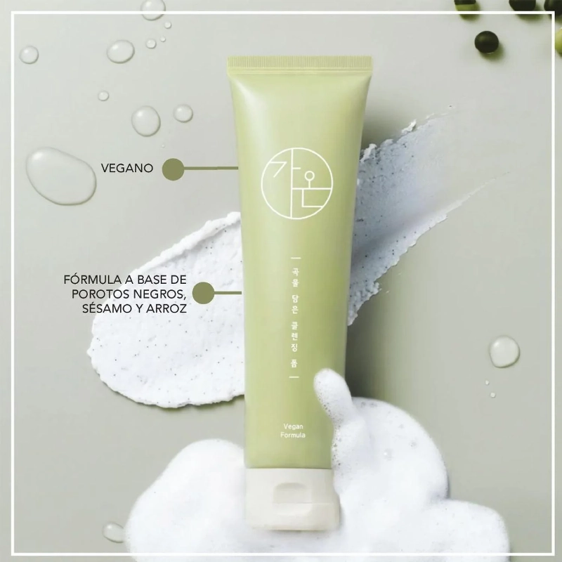 Vegano. Combate los signos de la piel estresa. Efecto revitalizante. Hidratante. Antioxidante. Sólo 10 ingredientes, A base de granos de poroto de negro, sésamo y arroz que aportan nutrición a tu piel. No altera el ph de la piel. Protege el medio ambiente. Ideal para: Quienes buscan una limpieza suave y reconfortante. Modo de uso: 1. Humedecer el rosto y aplicar una cantidad adecuada de manera uniforme.